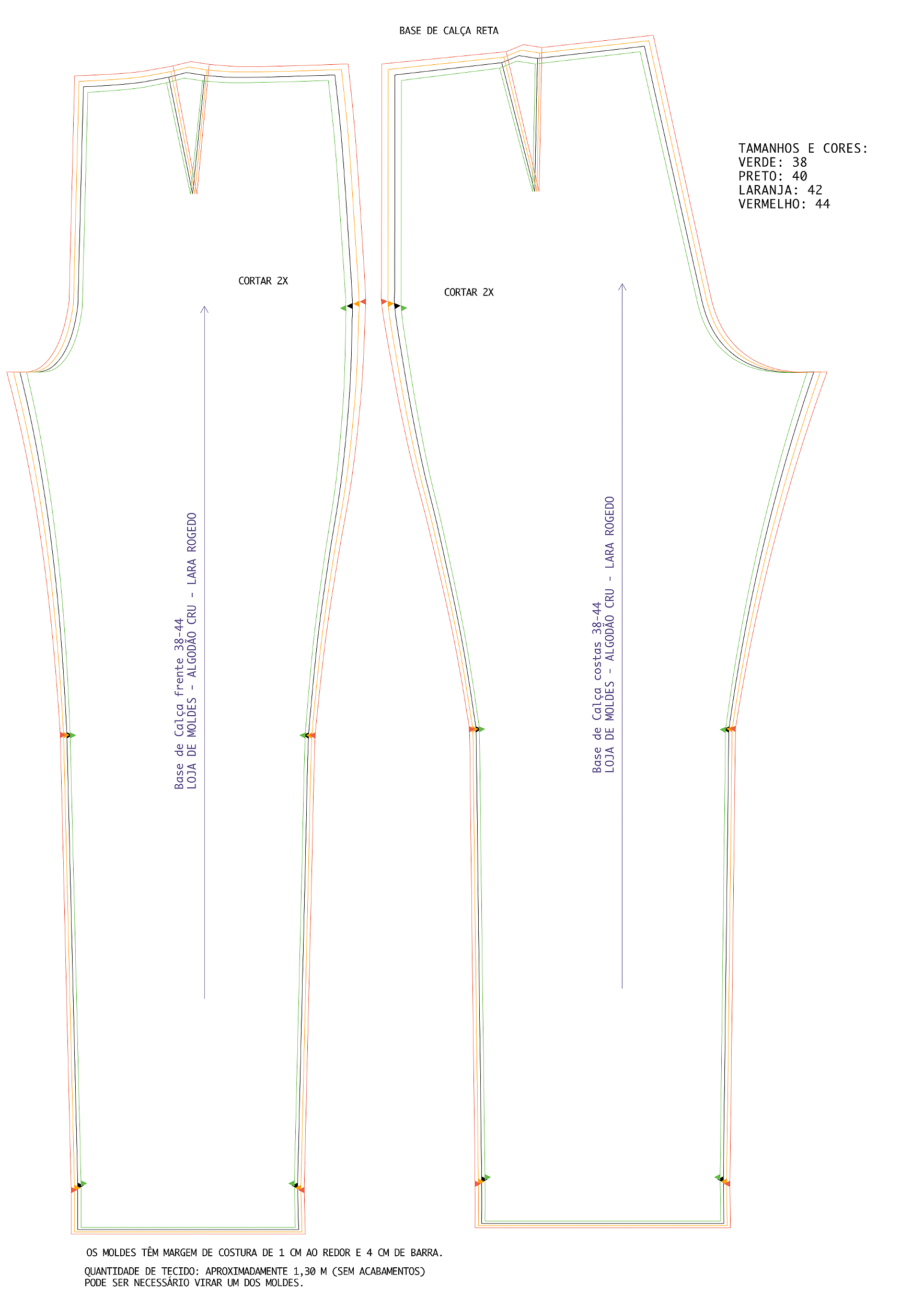 Molde pronto da base de calça – Tamanhos 46 a 54